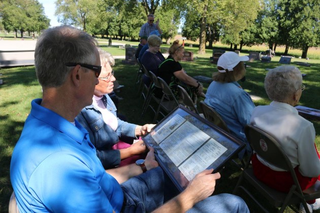Wood was unable to give her performance on Tuesday, but able substitutes were found in Hurd’s eldest daughter, Patty Hurd Will, who came from Des Moines for the Cemetery Walk, and Chuck Schott, a protege of Kate Hurd and longtime family friend. Their impromptu remarks brought out several handkerchiefs in the audience.