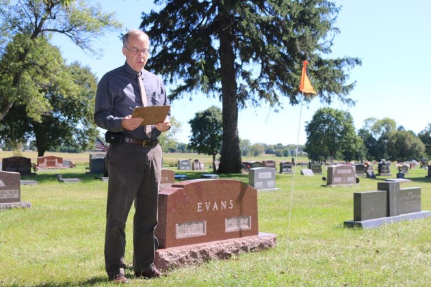 Attendees listened to enactments presented at the gravesides of the honorees as readers portrayed important moments in the musicians’ lives. This year’s actors were Rick Fazel in the part of White, Ramona Peel as Buettell, Gary Weishaar as Evans and Carla Wood as Hurd.