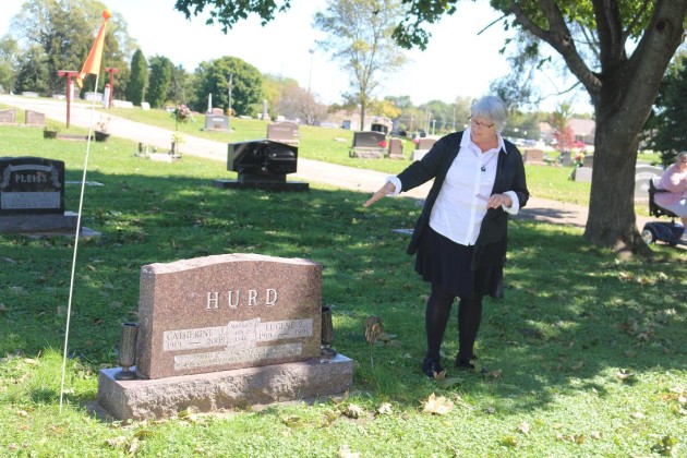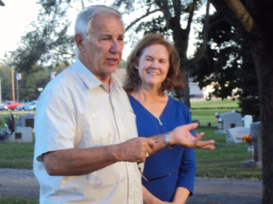 Chuck Schott, left, and Patty Hurd Will shared fond memories of Kate Hurd at the 2015 Violet Hill Cemetery Walk.