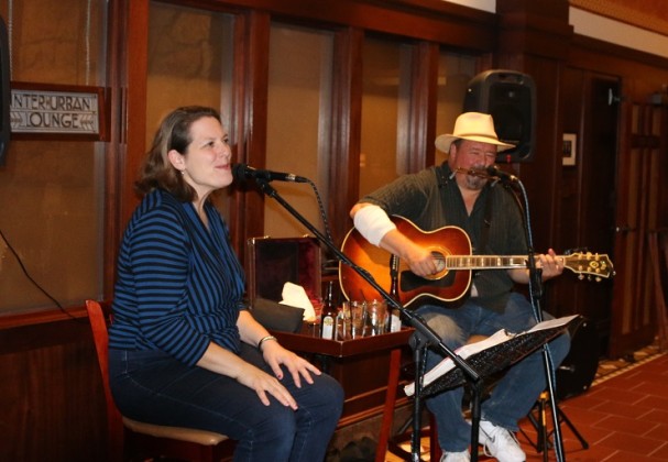 Big Joe Kinser and Jen Hughes provided musical entertainment, and a highlight of the early-evening gathering came when Hughes offered the microphone to Dirk, who delivered a spirited rendition of the 1952 Hank Williams classic, “Jambalaya (on the Bayou).”