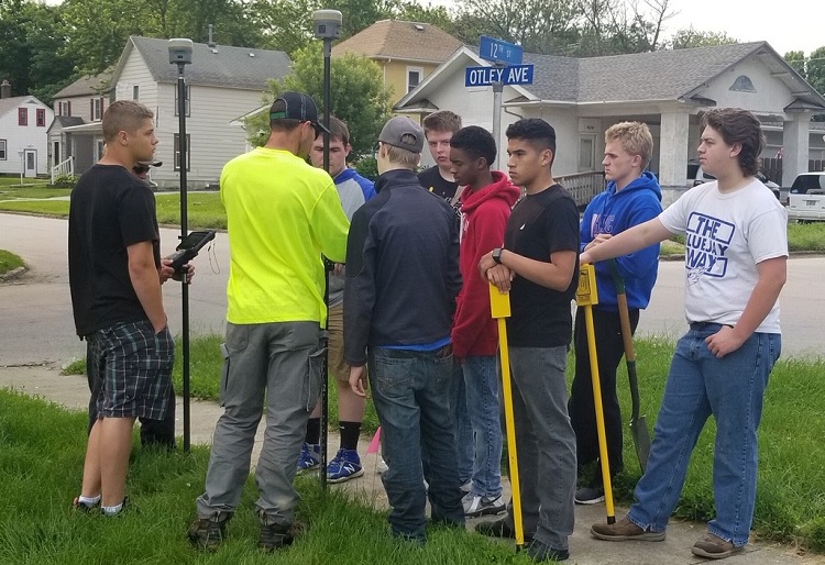 With the new Perry High School Building Trades Program gearing up for an August kickoff, eight PHS students assembled themselves Friday around surveyors from Bolton and Menk Inc., the city of Perry’s engineering consultant.
