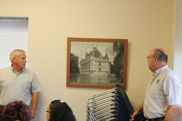 Supervisor Mark Hanson displayed a design sketch of the Dallas County Courthouse along with a picture of the castle in France that served as the model for the 112-year-old edifice.