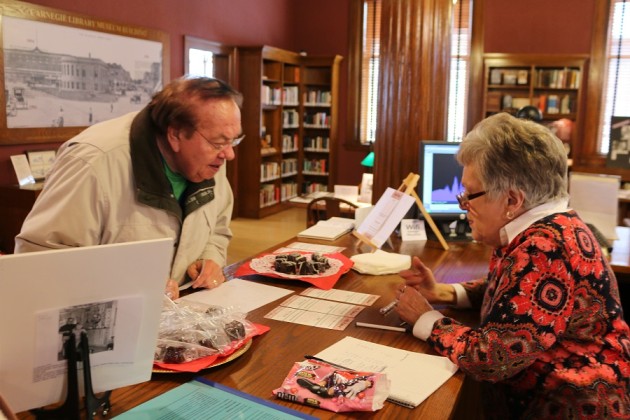 Perry chocolate lovers Margaret Harden, left, and Cathy Clark made the rounds in the 2016 Chocolate Walk Saturday, including a stop at the Perry Hy-Vee.