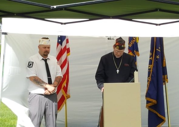 But the weather cooperated, and the program began at 10 a.m. under partly sunny skies. VFW Post 2060 Chaplain Ron Leber led an invocation, and Commander Nathan Hoffman delivered a Memorial Day reading.