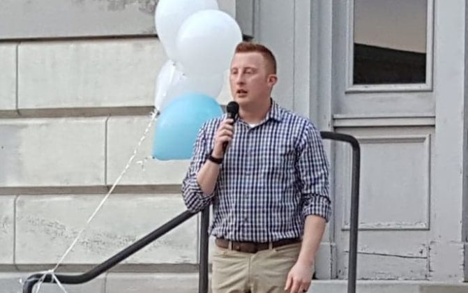 Candles were distributed among the people and lit in a ceremony of unity, followed by a symbolic release of four balloons, three white and one teal, performed by Dan Miller, a member of the Adel City Council, and Bryce Smith, owner of the Adel Family Fun Center.