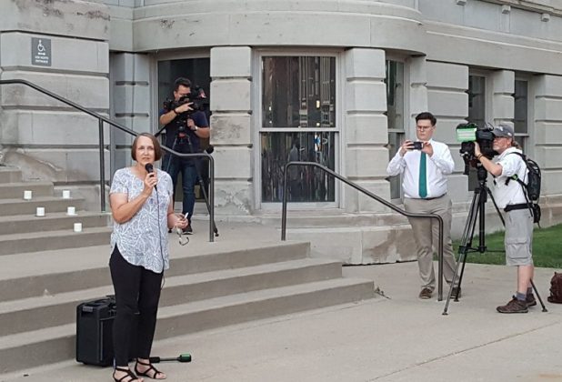 The Rev. Julie Higgs, pastor of the Grace Lutheran Church in Adel, opened the memorial vigil with an invocation.
