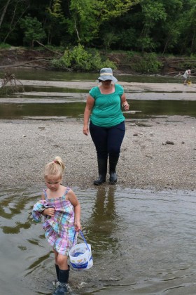 Dallas County Conservation Board Naturalist Cindy Blobaum — “Critter Cindy” to the youngsters who know her for her wildlife presentations — led a trek Sunday trek along the sandbar and shallows of the Snyder Tract in a search for earthly treasures.
