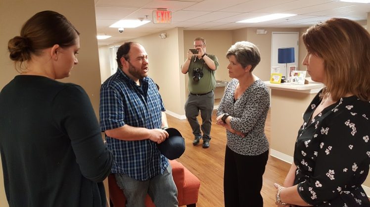 U.S. Sen. Joni Ernst made a stop in Dallas County Friday morning on her 99-county tour of Iowa, paying a visit to the Hope Wellness Center in Woodward and learning about the innovative programs at the community-based mental health facility.