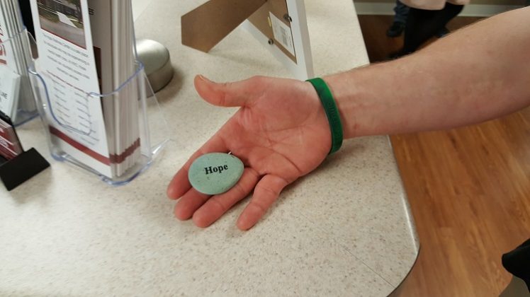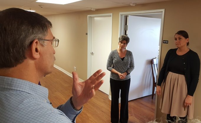 Karen Rosengreen, director of services at Hope Wellness, said demand for the center’s transitional services is high, with a six- to 10-week waiting list for people needing services. Rosengreen introduced the senator to Shane Laird of Perry, currently a resident in the transitional program who is making progress.