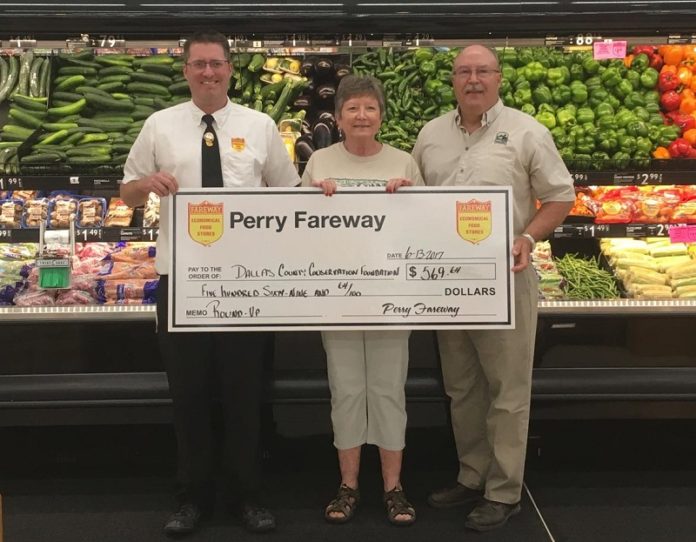 The Dallas County Conservation Foundation took a step farther toward its goal Tuesday when Fareway Manager Travis Landgrebe presented the foundation with a donation check.