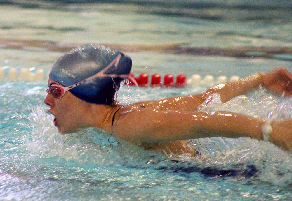 “My personal-best time is 1 minute, 7 seconds and I would like to come within a couple of seconds of that,” she explained. “So far I have been swimming the fly only in the individual medley (a 50-meter leg), but I have been feeling strong in it and told (head coach) Jean (Dowd) that I was ready to give the 100 a try.”