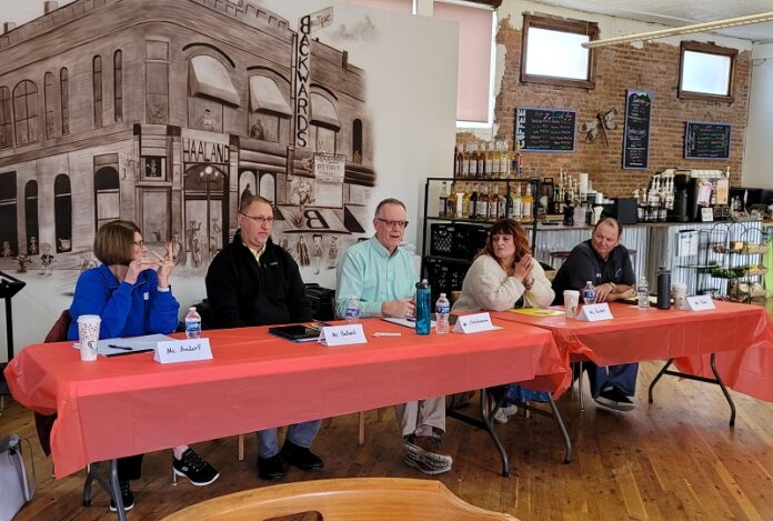 The candidates in the Tuesday, Nov. 7 general election — eight-year incumbent and current PCSD School Board President Linda Andorf and first-time contenders Jacob Ballard, Max C. Christensen, Mindy Farmer and Joe Tuhn — have now met in forum twice in the last 10 days, but Andorf was unable to attend the Oct. 19 meeting at the Hotel Pattee.