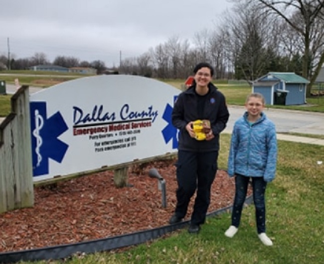 Perry Girl Scout Jadeyn Hoffman, 10, of Troop 51559 in Perry, donated boxes of Girl Scout Cookies in appreciation of our front line workers, dropping off the sweets at the Perry Police Department, Dallas County EMS, Dallas County Hospital and Family Medicine Clinic and Perry Lutheran Homes Spring Valley campus.
