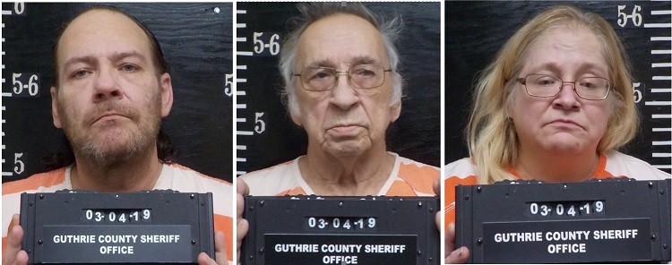 Jamaica residents David Moore, 52, left, Issac Moore, 74, center, and Andrea Willey, 54, were arrested March 4 by the Guthrie County Sheriff's office on a raft of drug-related charges, including possession of methamphetamine and possession with intent to deliver methamphetamine.