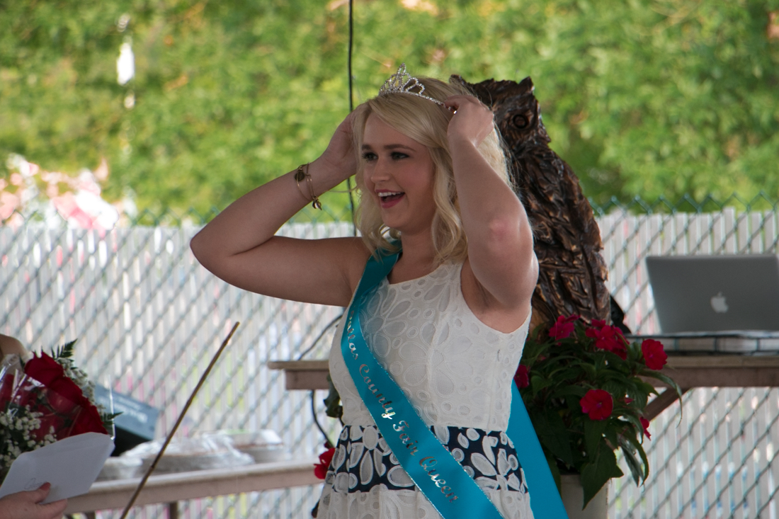 Emily Harney of Granger was crowned Fair Queen and Katelyn Wilderdyke was named Fair Princess in ceremonies at the county fairgrounds in Adel. Runners-up Alexa Sandon of Clive and Alexa Nielsen of Dexter were in no way lacking in talents and accomplishments and shared in the general esteem of the standing-room-only crowd.