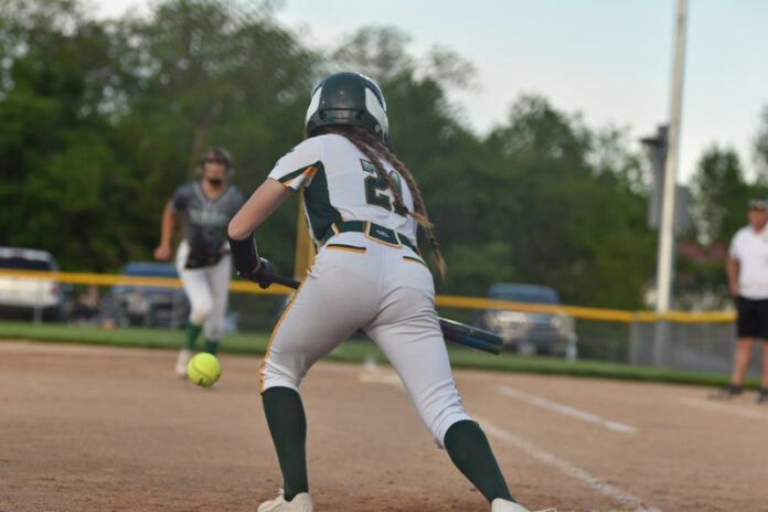 W-G's Bella McDivitt drops down a bunt earlier this season. Photo courtesy Sheila Wallace.