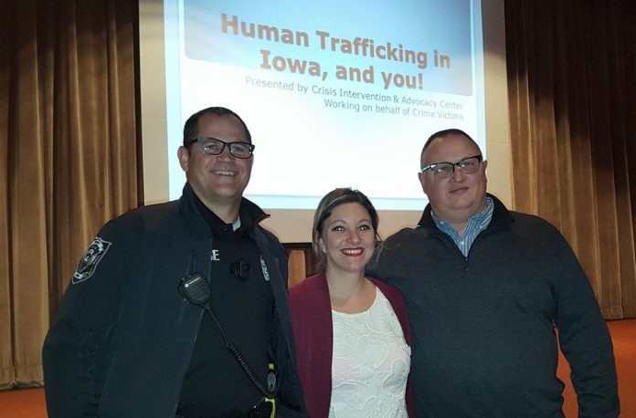 This was one of many appalling facts revealed Wednesday at the McCreary Community Building when Perry Police Department Chief Eric Vaughn, Crisis Intervention and Advocacy Center (CIAC) Domestic Abuse Specialist Nikki Kinkennon-Bettis and CIAC Violent Crime Victim Specialist Dan Brickner discussed human trafficking in Iowa.