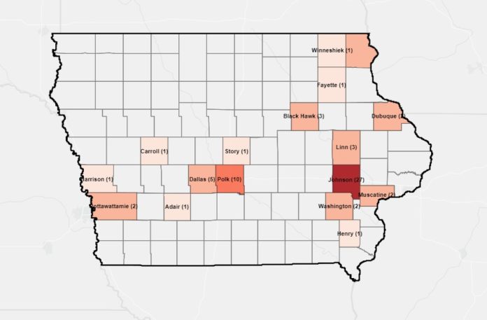 DES MOINES – The Iowa Department of Public Health (IDPH) was notified Saturday of 23 additional positive cases of Iowans with COVID-19, for a total of 68 positive cases. To date, there have been 1,049 negative tests conducted at the State Hygienic Lab.