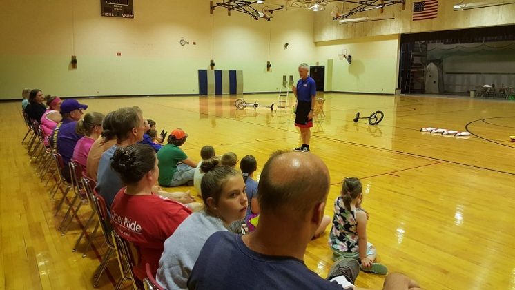 Highlights of the show came when Abigail, one of the Minburn Summer Reading Program students, balanced three spinning plates, including one on her head, and two other summer readers, Olivia and Chase, took part in a club-throwing routine, with the Hanson’s pulling gags about the safety equipment.