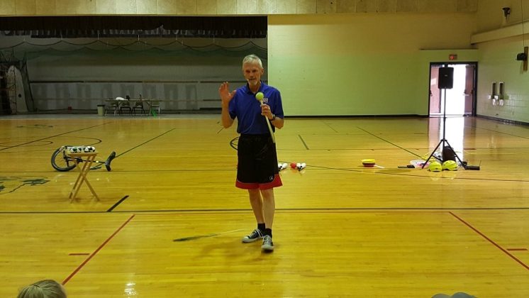 About 25 summer readers and their instructors gathered in the gym to watch a dazzling demonstration of juggling by Mark Hanson — not to be confused with a local political juggler of the same name. Hanson is a holder of two Guinness World Records for speed juggling.