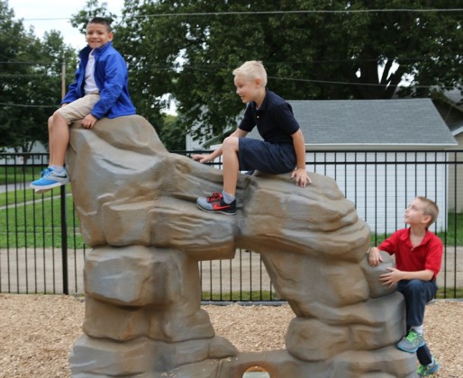 Recess means progress at St. Patrick School in Perry, where a successful fundraising campaign by the St. Patrick School Volunteer Special Projects Committee has brought a redesigned and rebuilt playground, complete with kid-friendly new equipment, to the school’s north side school yard.