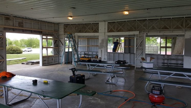Working in collaboration with the Perry Parks and Recreation Department, the civic Kiwanians are installing new metal siding on the old shelter house, with interior improvements also planned.