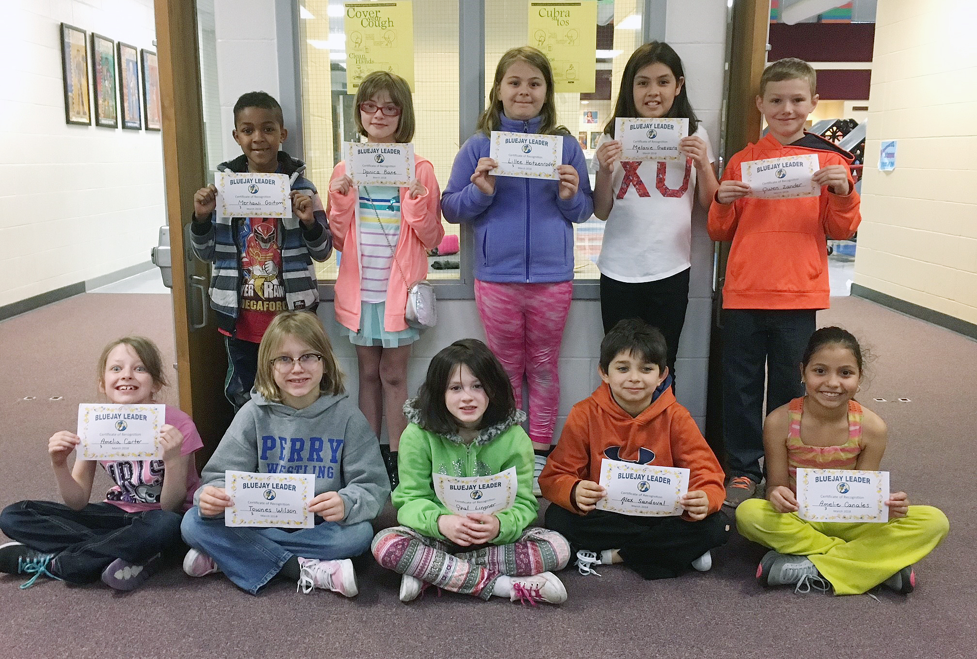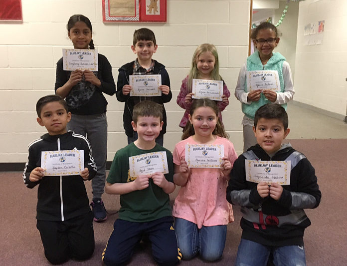 Classroom teachers at Perry Elementary School have one task each month all likely enjoy attending to: naming Bluejay Leaders. Students who display respectful, responsible and safe behaviors are chosen monthly to receive the honor. A total of 70 students were recently named March Bluejay Leaders.