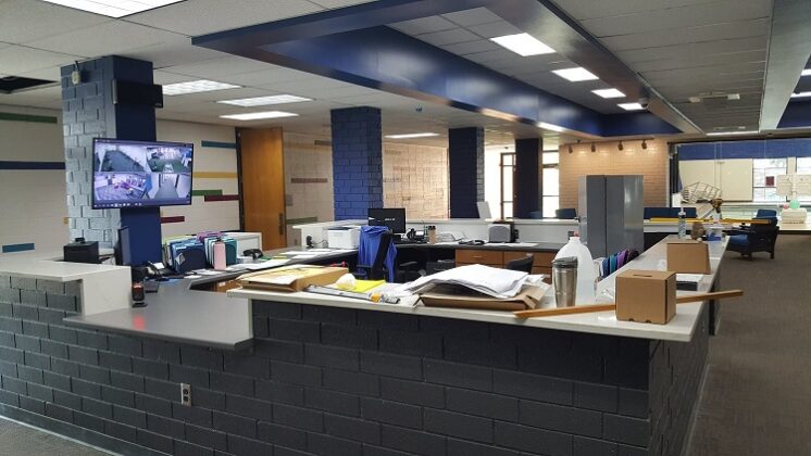 Workers from Earlham-based Blue Ribbon Builders have spent two months building a public entrance on the east side of the facility as well as installing a new circulation desk, updating the existing bathrooms and adding a new family bathroom and laying new carpet and tile throughout.