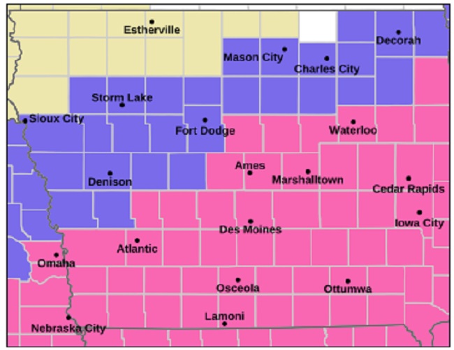 The National Weather Service office on Johnston has issued a winter storm warning that will take effect at midnight Tuesday night and last until midnight Wednesday night. Snow is expected to begin about midnight over western Iowa and spread into central and eastern Iowa after midnight.