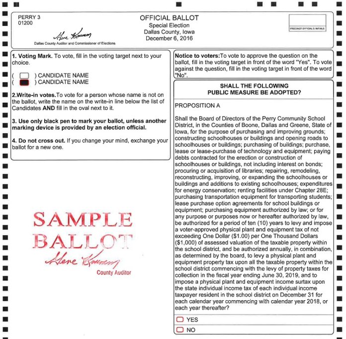 I’m afraid you’re wrong, Chris. This is not a tax increase at all. As I understand the matter, this ballot proposal merely renews or extends for another 10 years the PPEL levy that Perry Community School District voters first approved 10 years ago. The ballot language, in all its execrable legalese, is typical of such matters. I believe it is boilerplate language, the same used on the Woodward-Granger PPEL a couple of months ago. As I understand it, this proposal does not impose a new tax or increase an existing tax. The money raised can only be used for facilities, equipment and technology. For 10 years, the PPEL levy has helped the district buy new buses and laptops. It’s helped the district maintain its buildings and facilities. In my opinion, district voters would be wise to approve the ballot proposition just as they approved it 10 years ago.