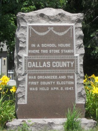 According to “Past and Present of Dallas County,” the log cabin had “a clapboard roof, puncheon floor, puncheon seats and desks and a sod-and-stick chimney which stood outside the building.”