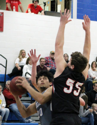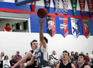 Brendan Ivory drives to the basket for two points in Perry’s RRC game with visiting ADM Friday.