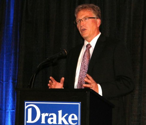 Perry Mayor Jay Pattee explained the unique historical circumstances of housing patterns in Perry as part of his introduction of Richard Rothstein at the Harkin Institute lecture Thursday at Drake University.