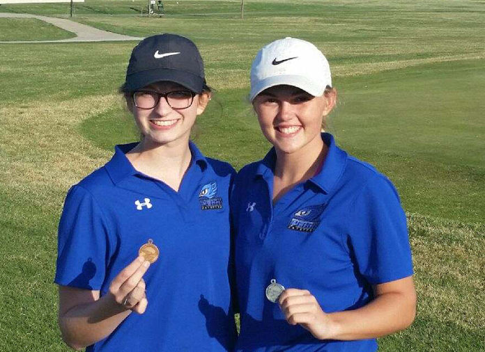Perry's Delaney Eiteman (left) tied for the fourth-lowest overall score, with Alyssa Kruger the runner-up after 18 holes in the W-G Invite Thursday. Photo submitted.