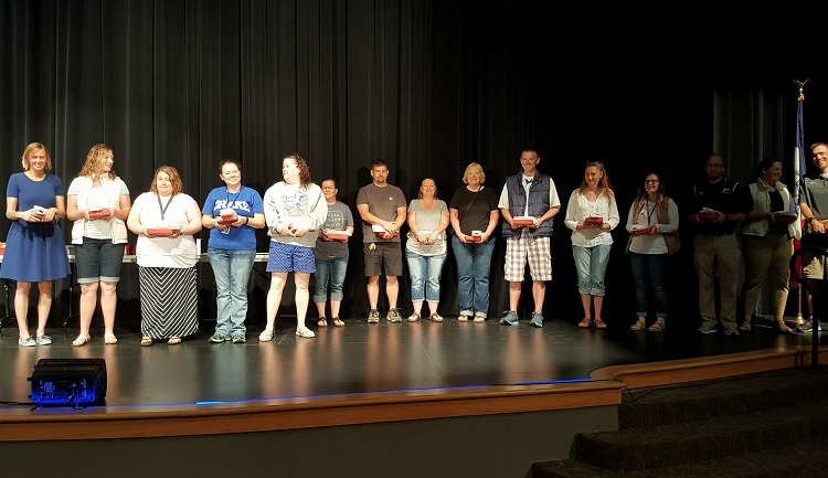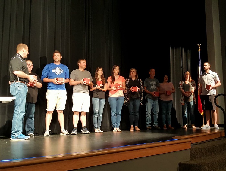 Ten-year employees of the district were Tasha Galindo, Richelle Atkins, Terra Webb, Jessica Renken, Heather Nelson, Jenn Nelson, Amy McCord, Rebecca Hopkins, Curt Cornelius, Pamela Faltonson, Cynthia Burkett, Shannon Cline, Katryne Bass, Katie Hardy, Matt Hardy, Torey McElroy and Nathan Krohn.