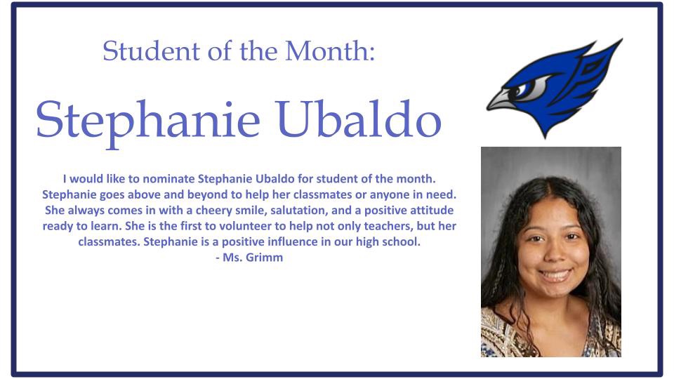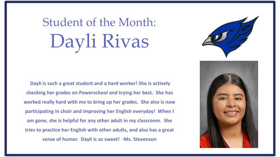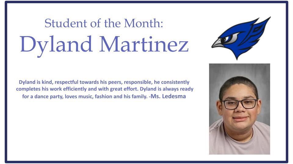 Students of the Month for January were Aidan Carlson, Stephanie Ubaldo, Dayli Rivas and Dyland Martinez.