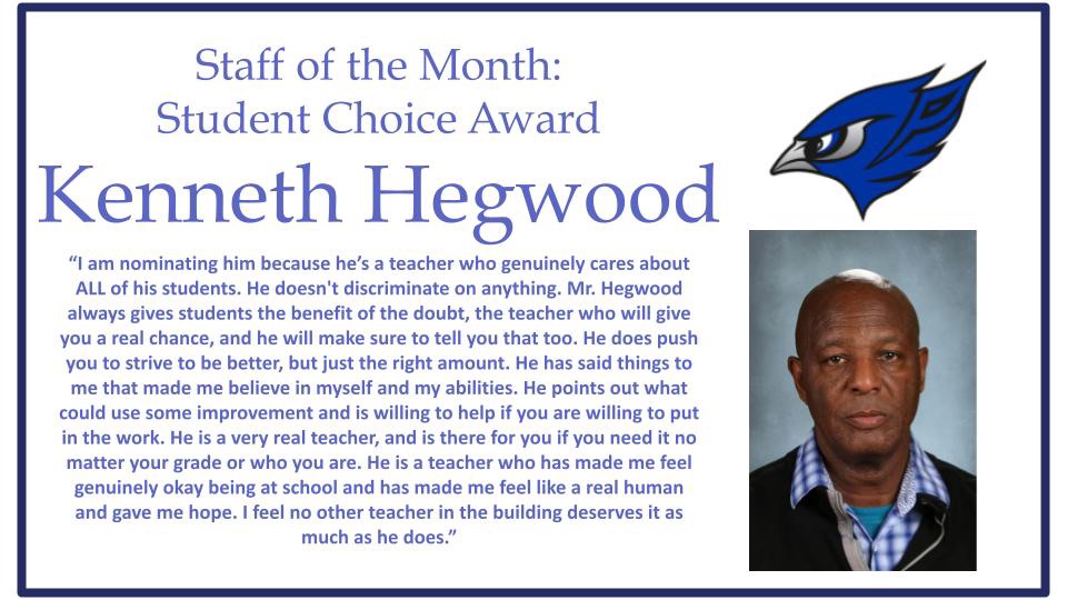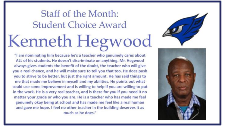 Jason Lutterman was awarded Staff of the Month recognition by her peers, and Kenneth Hegwood received the Staff of the Month: Student Choice award.