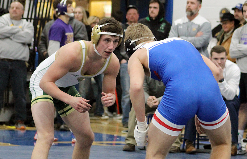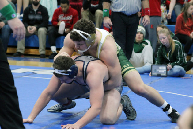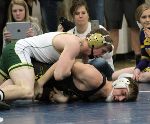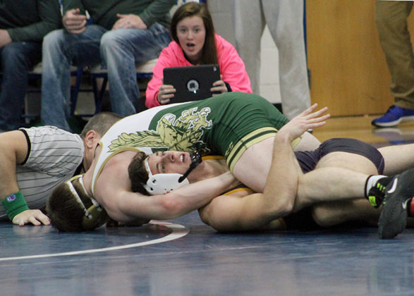 Senior 106-pounder Hunter Pierce nearly joined Fisher as a champion, but was stopped on a 6-0 decision by Van Meter/Earlham’s Riley Harger in the finals. Pierce (25-9) had advanced with a pair of wins by fall.