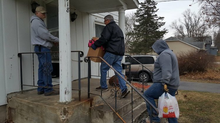 From their staging grounds at the Dallas County Extension offices on the fairgrounds in Adel, volunteers from the sheriff’s office and various municipal public safety agencies loaded their vehicles and fanned out to towns and farm houses around Dallas County, bringing meat and potatoes, bread and milk and eggs, blankets and toys “and various other foods and sundries” to county families, according to the Sheriff’s office.
