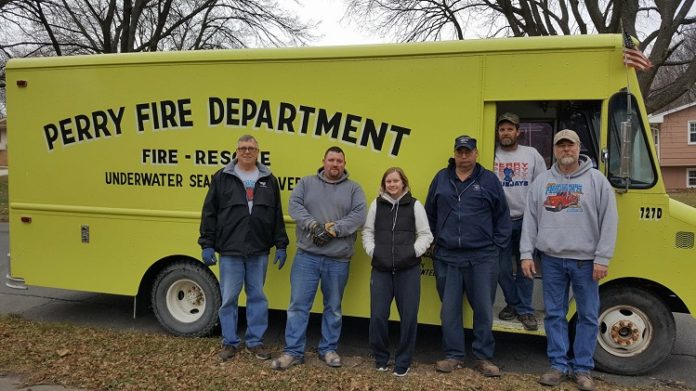 The Perry team was led by Perry Volunteer Fire Department Assistant Fire Chief Grason Hill, who was joined by Assistant Fire Chief Frank Eiteman, Fire Captain Andy Modlin, Lieutenant Rodney Cromwell, Firefighter Dave Barkley and volunteer Elise Hill. The Perry volunteers delivered baskets to families in Perry, Bouton, Dawson and Minburn.
