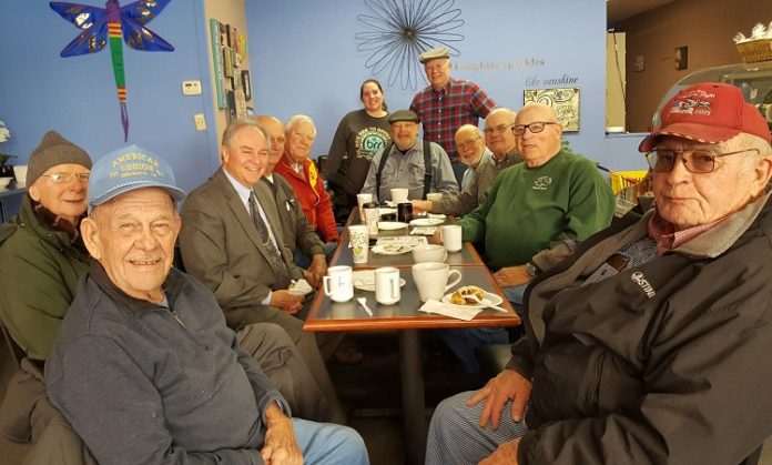 Jan. 10, the 96th birthday of Jim Haas of Perry, was marked by his son, Marty Haas of Johnston, by treating Jim’s friends in the Society of Retired Experts (SORE) coffee group to rolls and coffee at the Perry Perk coffeehouse in Perry, with owner Tari Mason treating all well.