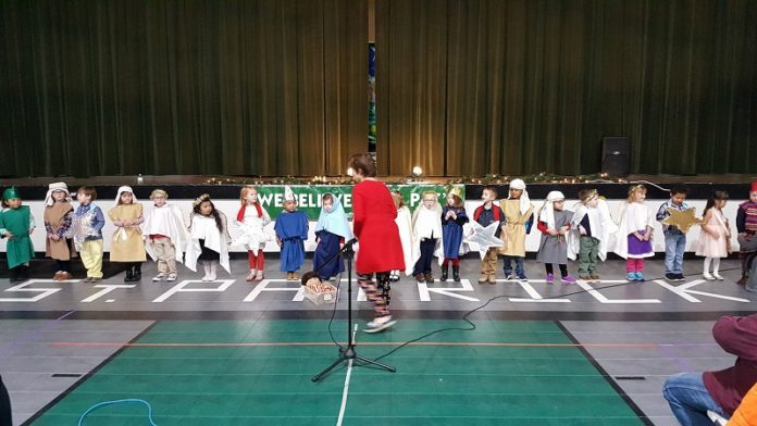 The third and fourth grade classes sang “It’s Beginning to Look a Lot Like Christmas” and “The Twelve Days of Christmas.” The fifth graders performed “So My Sheep May Safely Graze” and “Silver Bells.”