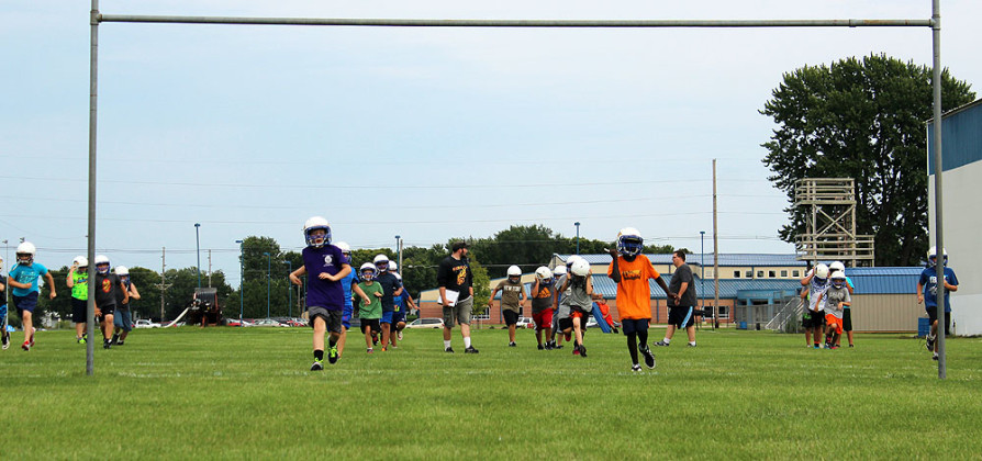 The Perry football team was busy going through a final walk-through on Dewey Field in preparation for Friday’s Rock Hunger Game with visiting ADM, while the practice field was busy put to use by the fifth and sixth grade football teams that represent Perry in the Central Iowa Youth Football League.