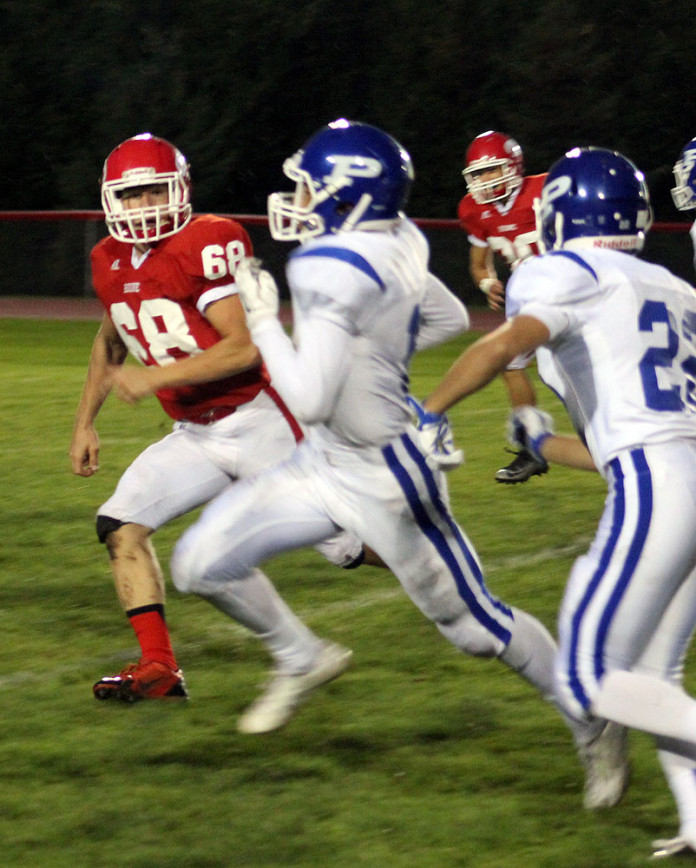 Perry linebacker Mark Campos (28) dropped back into coverage and into the passing lanes, where he has able to knock away a pass that could have resulted in a big gain for Boone.