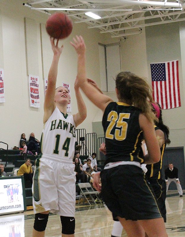 Alyssa Bice had 16 points to lead W-G, with Katelyn Scharlau scoring eight points and Kaitlyn Peters six. Five points from Kayley Dresback, four from Mae Anderson, two from Natalie Helbling and a Lisa Pitman free throw rounded out the Hawk scoring.