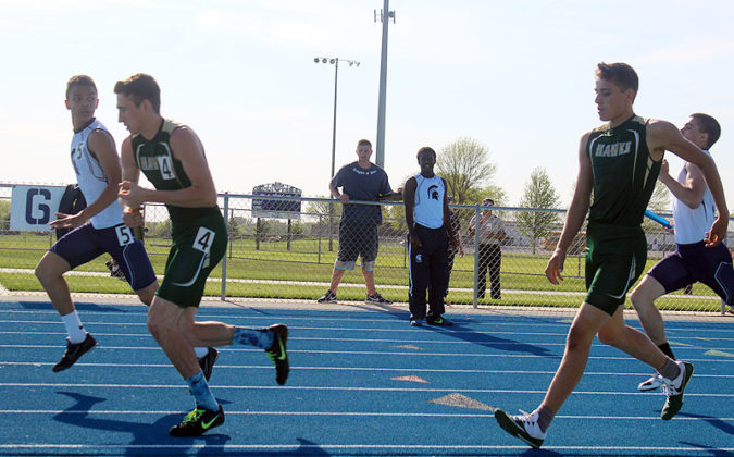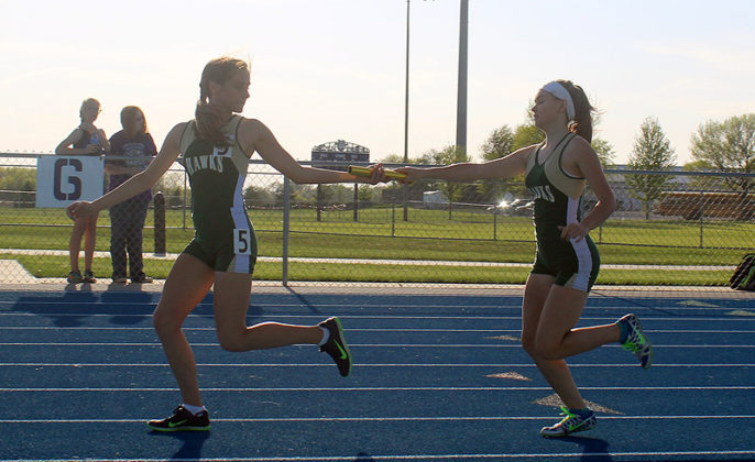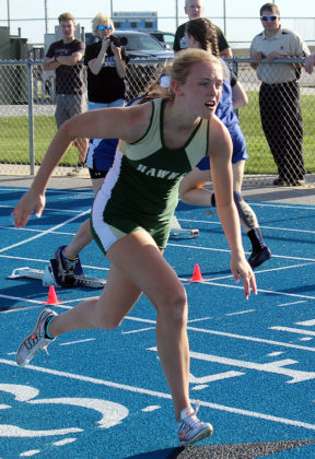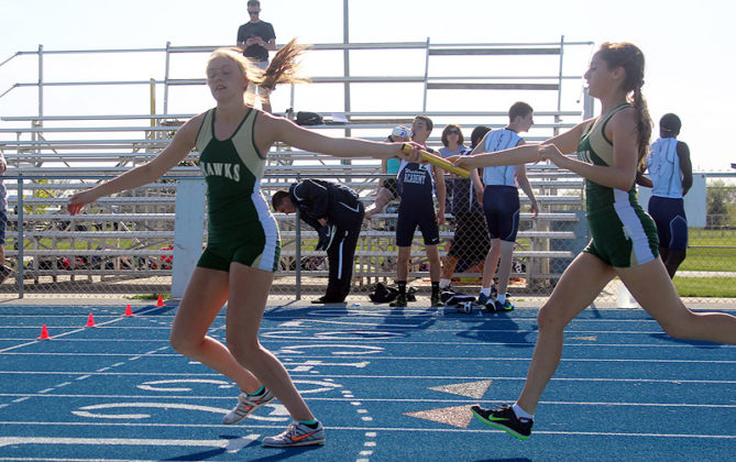 Kaitlyn Peters won the 800 and 1500 for the Hawk girls, crossing in 2 minutes, 50.7 seconds and 5:53.59, respectively. Ashlyn Soelberg won the 100 hurdles in 19.83 clicks, with Anna Tague first (29.49) and Sophia David third (31.76) in the 200.